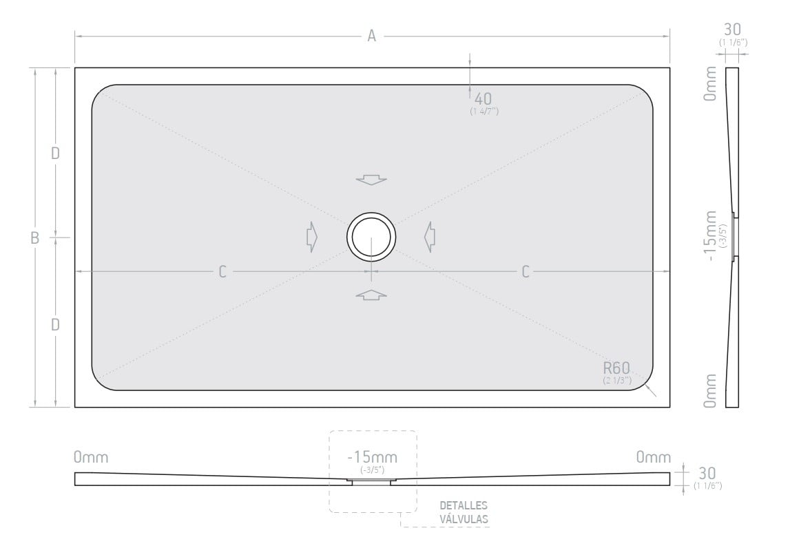Exelis presenta un diseño sencillo y robusto. Con una evacuación a cuatro aguas, este plato de ducha se adapta a cualquier necesidad. Su acabado texturizado le otorga, además, las más altas propiedades antideslizantes.
