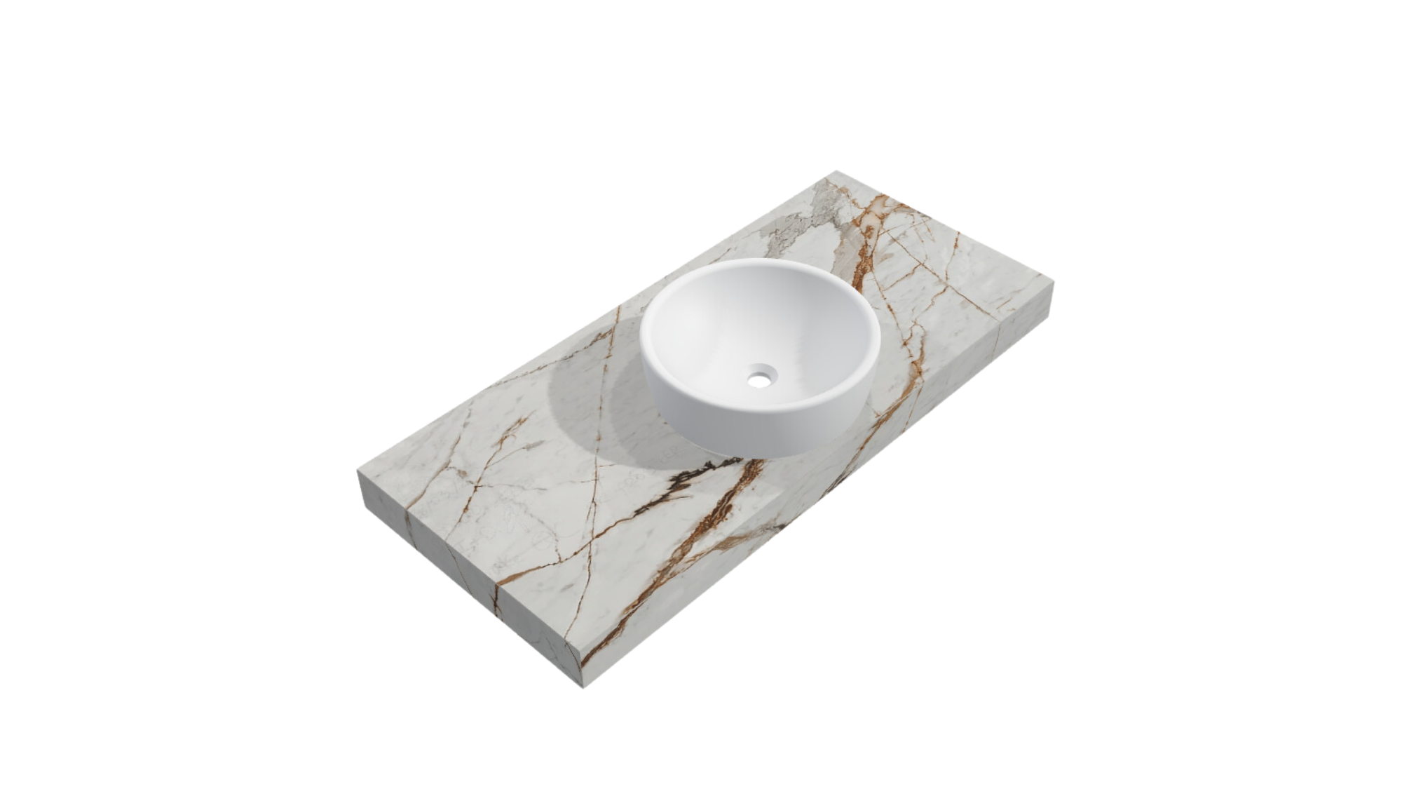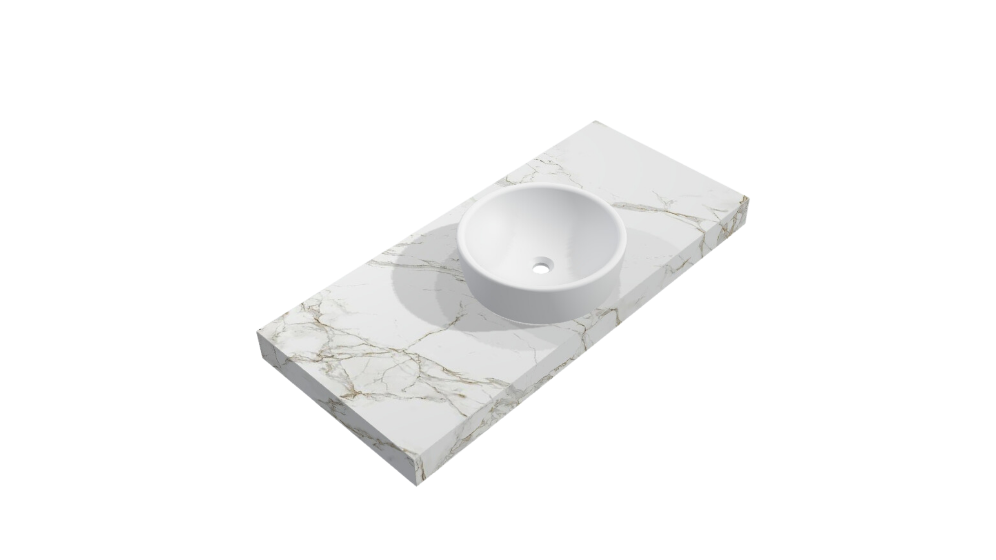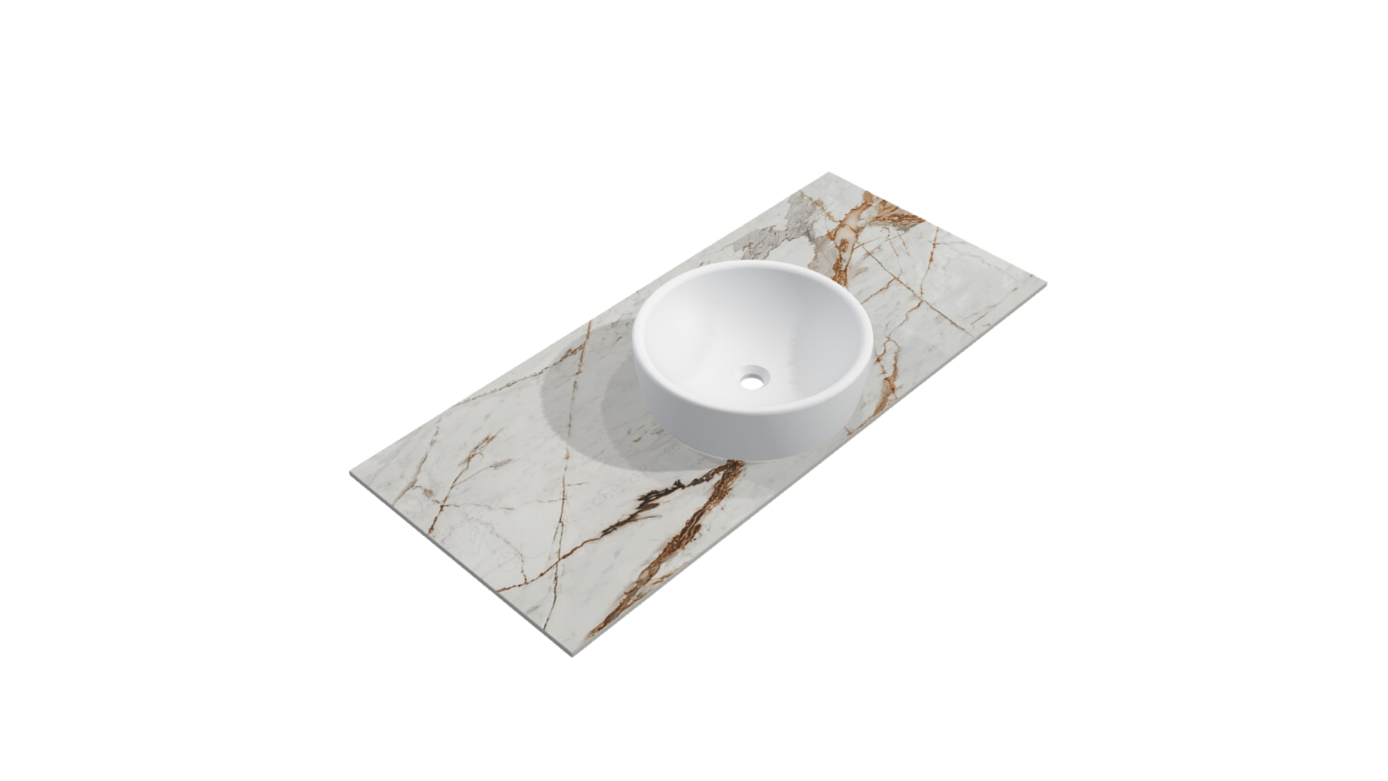 Hline Collection ofrece diferentes soluciones de encimeras y baldas para el baño. Con líneas actuales, elegantes y versátiles, Hline Collection aporta diseños adaptables y sofisticados para personalizar y dotar de vida a la habitación más íntima del hogar. Hline Urban es una encimera a medida junto a un lavabo de porcelana sobre encimera.